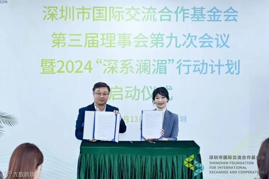 深圳市国际交流合作基金会秘书长李丹与铭普光磁集团副总裁李竞舟签署协议