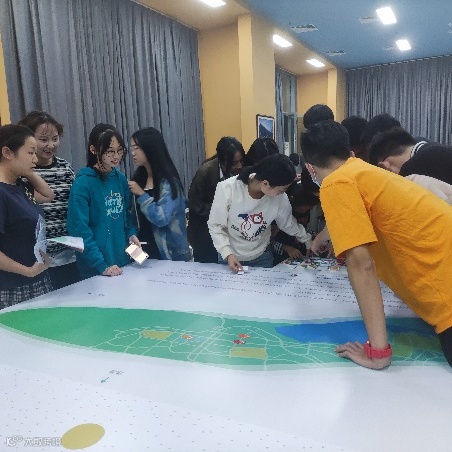 在定向越野活动之后,在11月14号,同学与老师们展开了后续的工作坊活动,同学们根据自己在定向越野中的经历制作属于自己组SDG地图,分析自己打卡的点的更深层的地方从而制作冰山模型,制作自己的名片,并且最后进行小组展示。