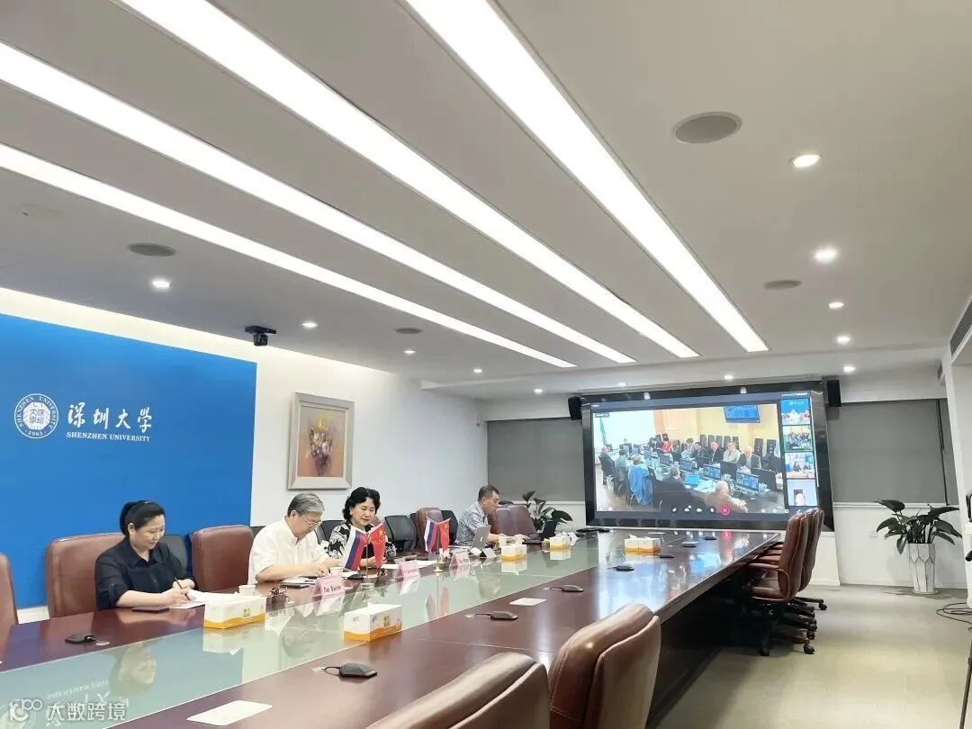 2022年6月8日下午,深圳大学党委书记李清泉教授、深圳大学中国经济特区研究中心主任、一带一路国际合作发展(深圳)研究院院长陶一桃教授、深圳大学中国经济特区研究中心教授、深圳大学中国质量经济发展研究院刘伟丽院长受俄罗斯联邦政府财经大学的邀请,线上出席国际科学与实践论坛“国际经济关系新框架——转型、全球化与未来”并发表主旨演讲。线上出席俄方人员有俄罗斯联邦政府财经大学教学副校长卡缅涅娃·叶卡捷琳娜·安娜托里耶夫娜、国际经济关系研究院院长别尔斯卡娅、俄罗斯联邦行情研究院院长斯巴达克·安德烈·尼古拉耶维奇等,中方成员还有“一带一路·俄罗斯及中亚贸易联盟”主席王彦明博士等。