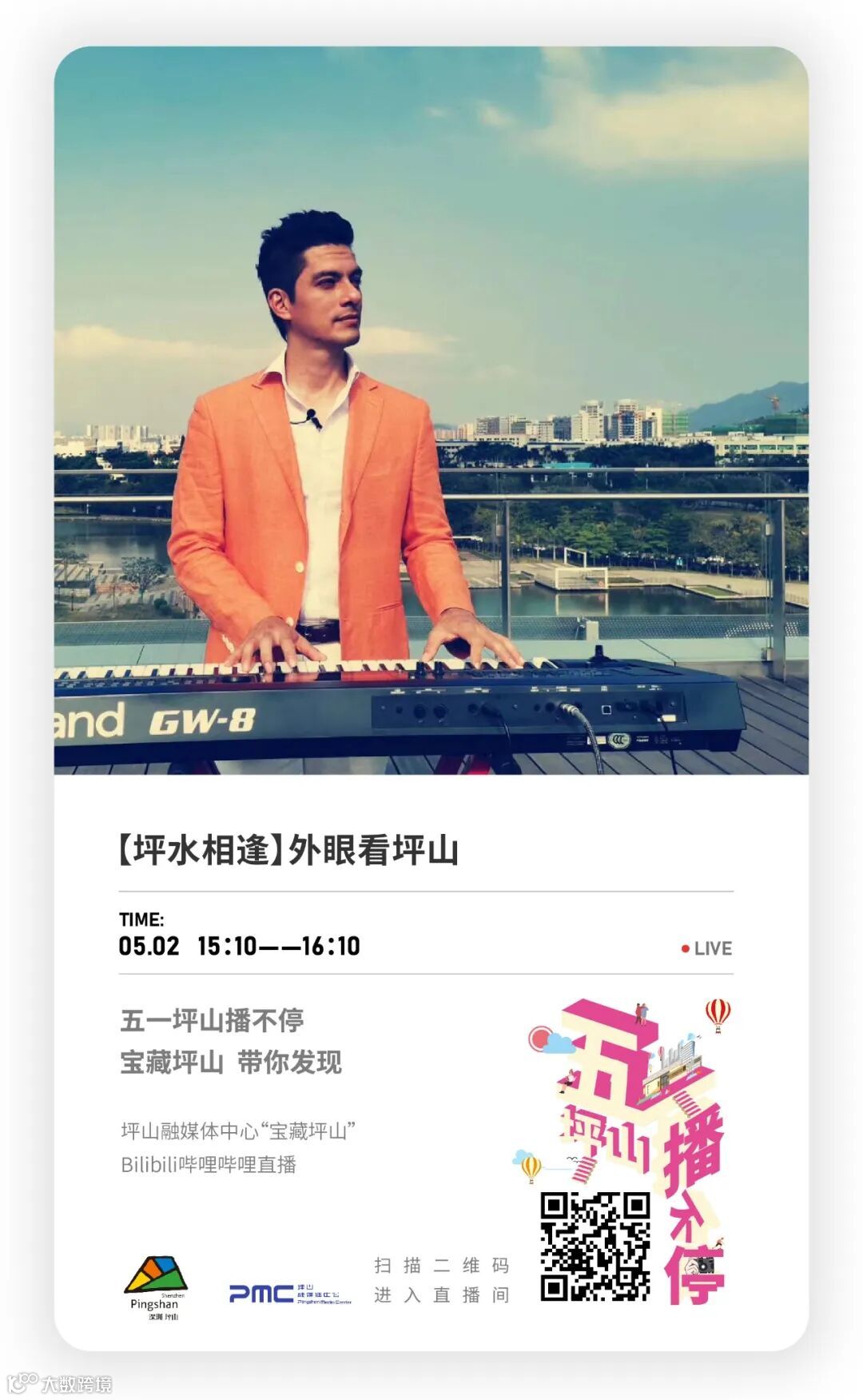 去年五一期间,安杰罗和坪山合作“五一坪山播不停”特别策划,带领大家“云游”坪山,在解锁新地标新玩法的同时感受坪山浓厚的创新氛围。这让他更深入地感受了坪山,也更深刻地理解了坪山。
