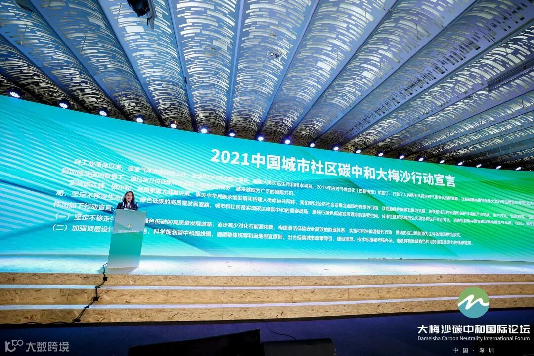 10月17日,以“助力双碳目标 共建美好未来”为主题的2021大梅沙碳中和国际论坛在深圳万科国际会议中心成功举行。论坛现场发布《2021中国城市社区碳中和大梅沙行动宣言》,助力实现碳达峰、碳中和目标。