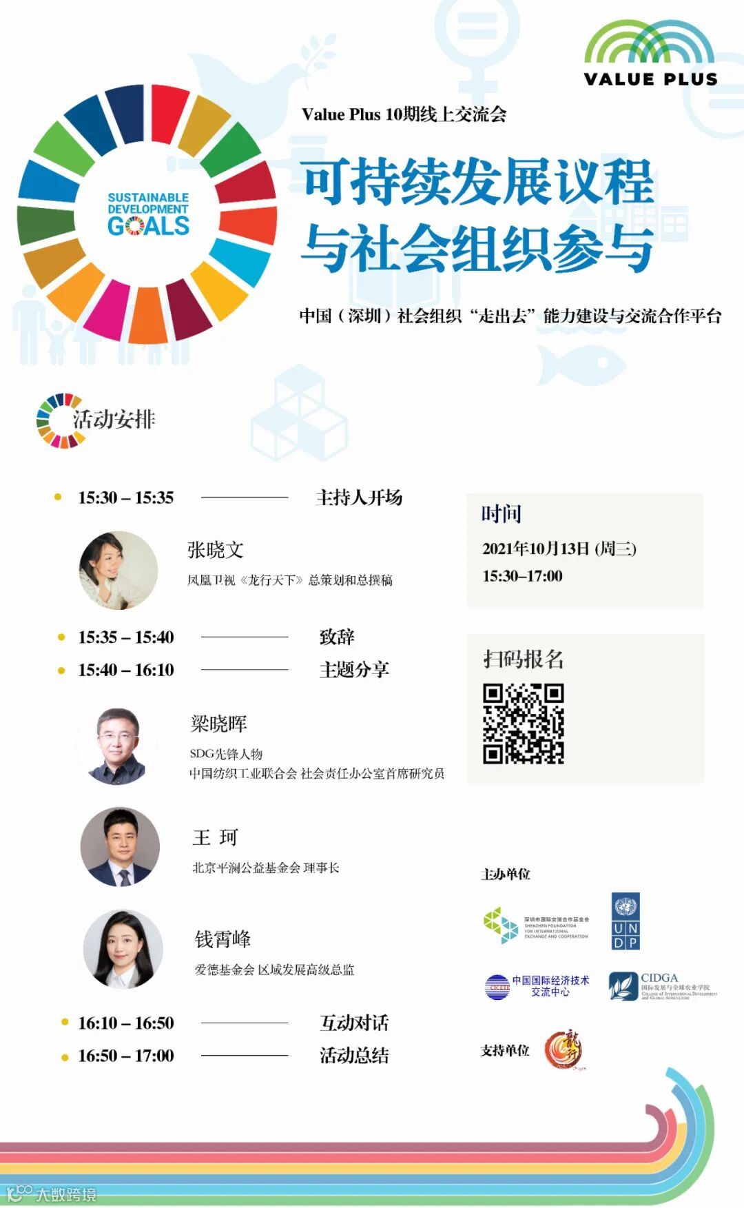 10月13日,Value Plus将携手来自中国纺织工业联合会、北京平澜公益基金会、爱德基金会的专家们,探讨社会组织参与可持续发展议程的机遇与挑战。