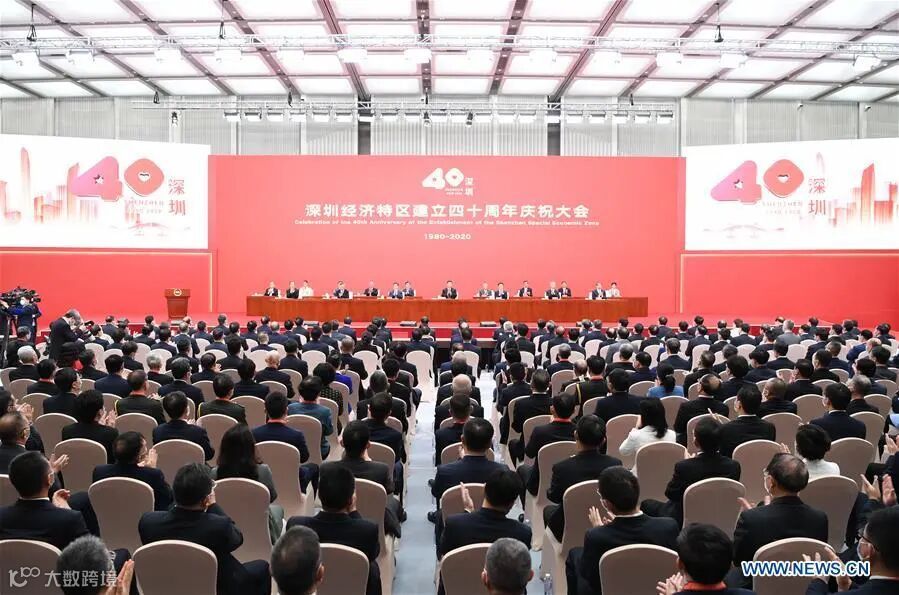 A grand gathering to celebrate the 40th anniversary of the establishment of the Shenzhen Special Economic Zone (SEZ) is held in Shenzhen, south China's Guangdong Province, Oct. 14, 2020. (Xinhua/Zhang Ling) China on Wednesday held a grand gathering to celebrate the 40th anniversary of the establishment of the Shenzhen Special Economic Zone (SEZ) in southern Guangdong Province as the country embarks on a new journey toward socialist modernization. President Xi Jinping, also general secretary of the Communist Party of China (CPC) Central Committee and chairman of the Central Military Commission, attended the gathering and delivered an important speech. The gathering started at 10:30 a.m. with participants singing together the national anthem. Hailing Shenzhen's development over the past 40 years as "a miracle in the world development history," Xi said the establishment of SEZs is a great innovative move made by the CPC and the country in advancing reform and opening up as well as socialist modernization. On Aug. 26, 1980, the Standing Committee of the fifth National People's Congress, the top legislature, approved the establishment of SEZs of Shenzhen, Zhuhai and Shantou in Guangdong Province and Xiamen in Fujian Province. Since then, Shenzhen has transformed from a small backward border town into an international metropolis with global influence and a permanent population of over 13 million. After four decades of rapid growth, Shenzhen now ranks fifth among Asian cities in terms of gross domestic product (GDP), which expanded at an annual rate of 20.7 percent to 2.7 trillion yuan (about 400.1 billion U.S. dollars) in 2019 from 270 million yuan in 1980. Xi called on Shenzhen to build itself into a pilot zone for socialism with Chinese characteristics, set an example for cities of a modern socialist country, increase its capabilities to implement the new development philosophy, build a new pattern to deepen all-round reform and expand opening-up on all fronts, and contribute to the construction of the Guangdong-Hong Kong-Macao Greater Bay Area. He urged the city to unswervingly implement the new development philosophy, achieve higher-quality development that is more efficient, fairer, more sustainable and more secure, and build itself into a global leader in technological and industrial innovation.
