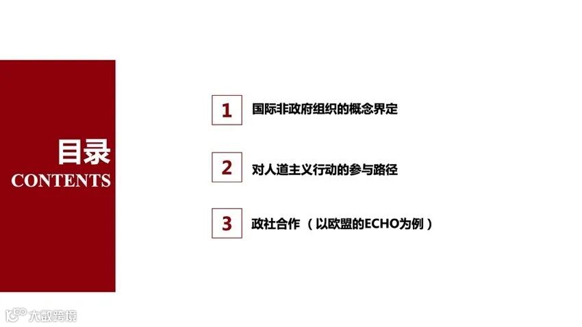 大家好,非常荣幸今天有这样的机会能够在这里跟大家介绍一下国际非政府组织人道主义行动的基本路径,我今天主要从三个方面来讲。