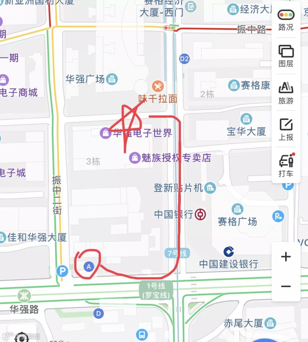 After enjoying the view (and maybe grabbing a delicious local breakfast/snack in one of the surrounding food stands), I recommend taking the subway line 1 to Huaqiang Road (华强路), Exit A, going straight, and taking the first left turn onto the main square plaza. Take the next left turn to find another U Station. Two stamps received!