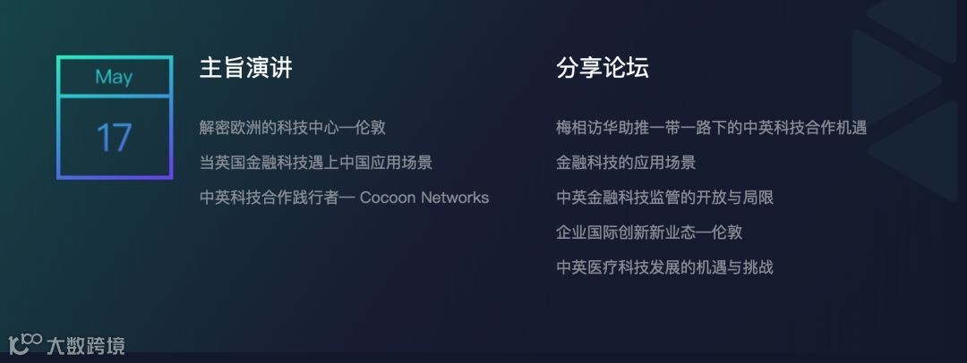2018年5月15日到18日,伦敦科技周首次进入中国市场将伦敦乃至欧洲的顶尖前沿科技创新呈现给中国。London Tech Week@China诚挚邀请您参与到最前沿的科技盛会,与⾏业领军⼈、科技创业者和⼤型企业共同探讨⾏业创新趋势及探索合作机会。