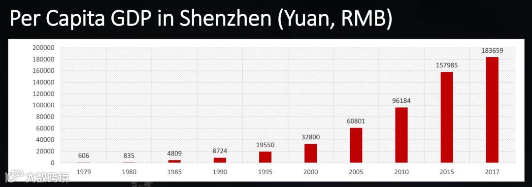 2017年,深圳居民人均GDP达到18.4万人民币,超越台湾、接近韩国