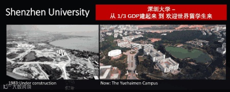 深圳大学,在1983年成立时,它的建立据称花费了市政府1/3的GDP,市委书记说“卖掉裤子也要把学校建起来”。如今深圳大学已面向海外留学生提供从本科到博士学位的奖学金。