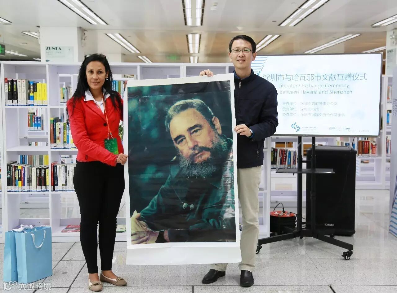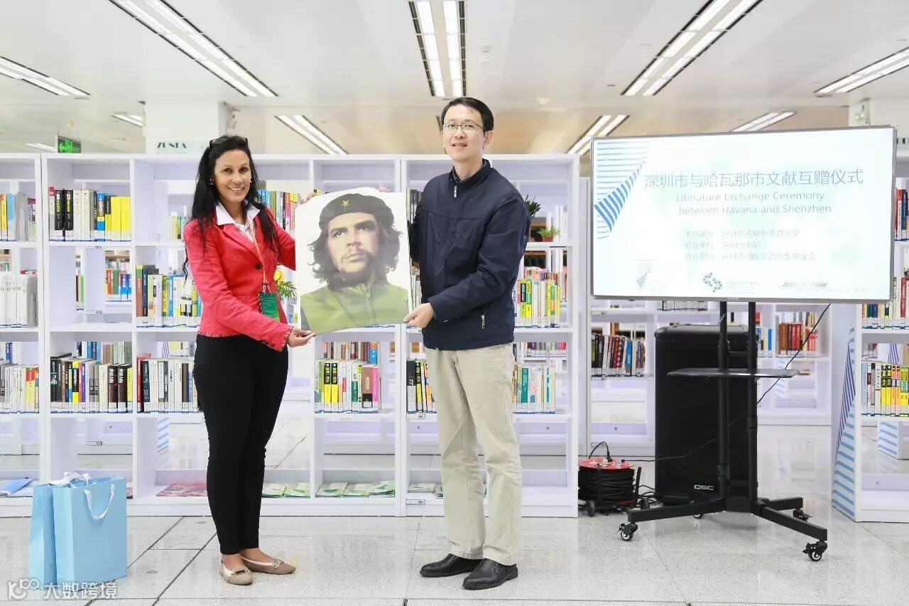 哈瓦那友城代表团此行向深圳图书馆捐赠古巴地方特色文献,并赠送具有代表意义的已故领袖卡斯特罗和切·格瓦拉的海报。