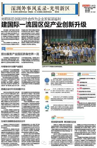 2016年9月29日,市外事办和深圳晚报联合主办“深圳外事风采录”,本期介绍了光明新区:创新对外合作为企业发展谋福利。