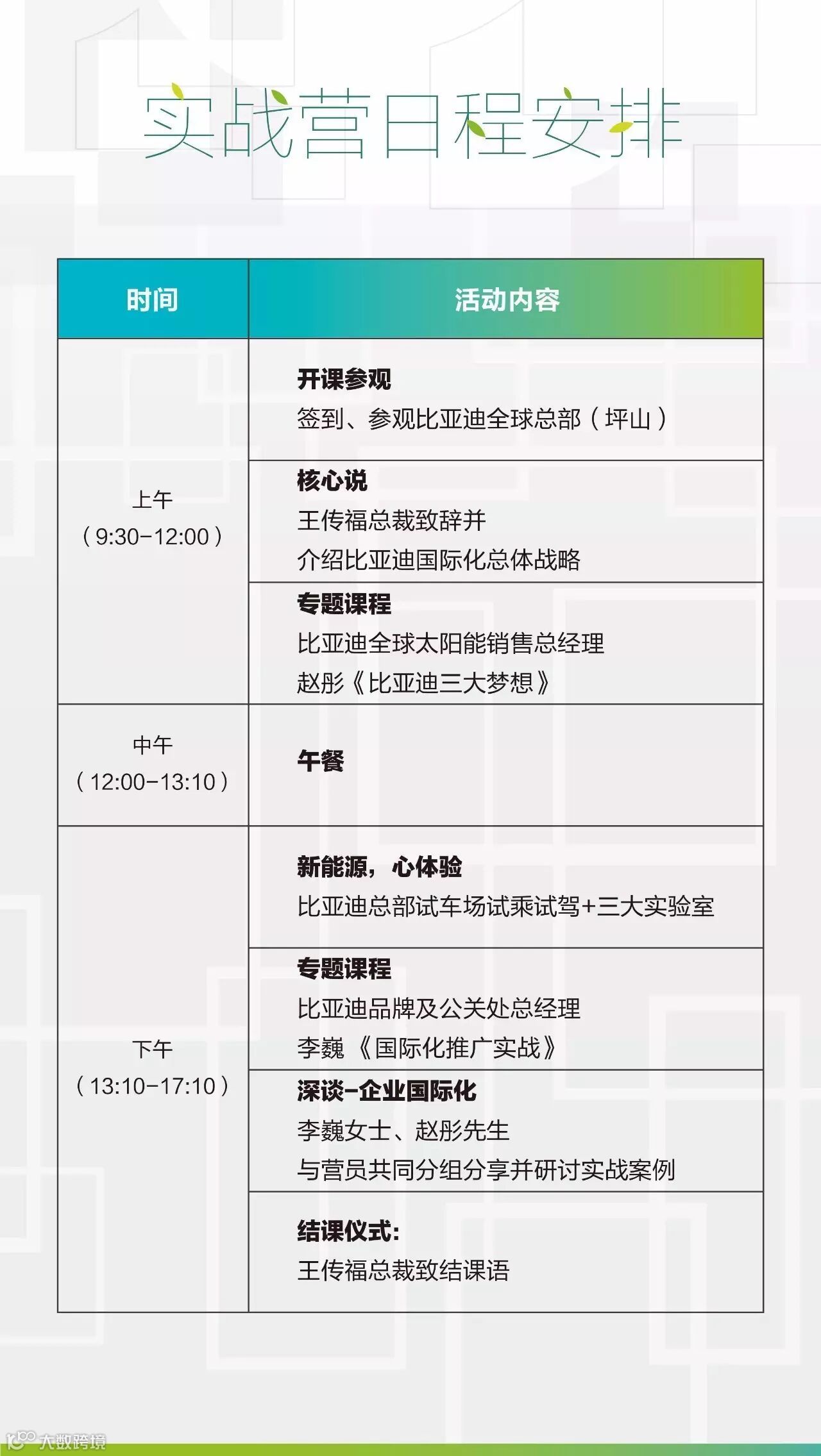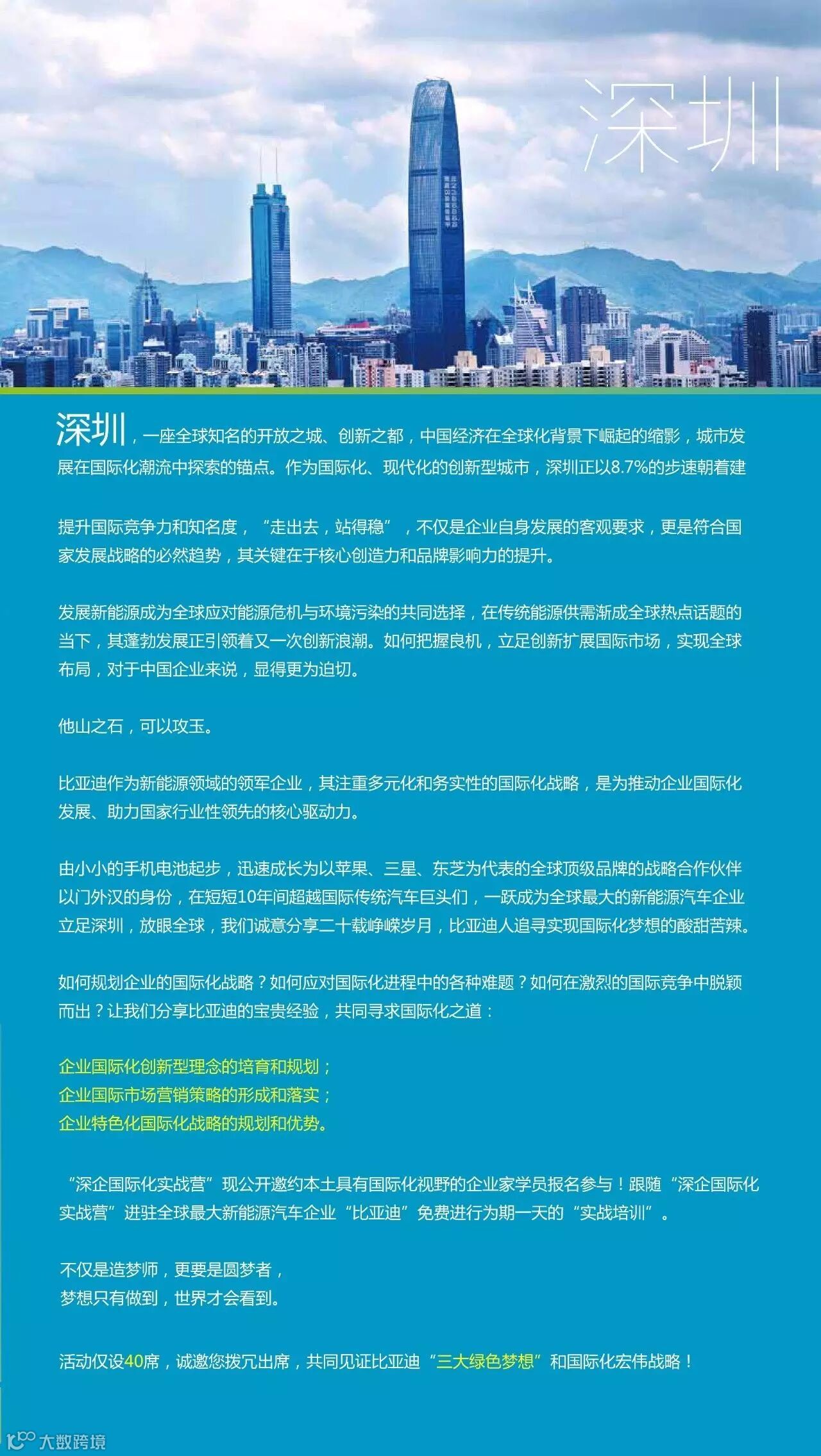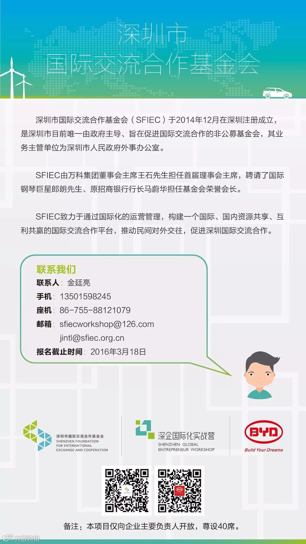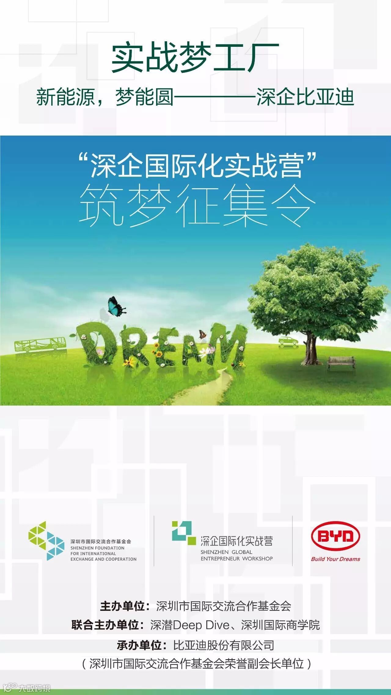 深圳市国际交流合作基金会仲春至,百业兴。由深圳市国际交流合作基金会主办,深潜Deep Dive、深圳国际商学院联合主办,比亚迪股份公司承办的第二期深企国际化实战营即将鸣锣开营!