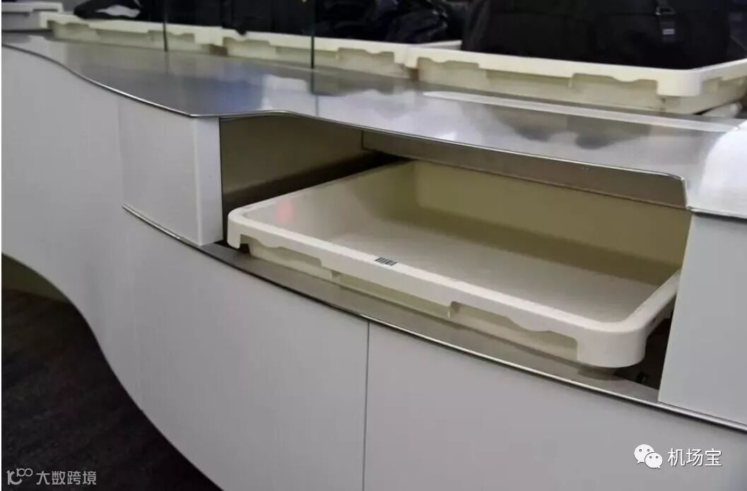 图:乘客可以在装载区下方自行取用空置安检托盘