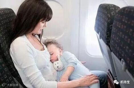 登机后,一定要找空姐要婴儿安全带,适用于没座位的小宝宝。在飞机起降和颠簸时,一定系上。所谓婴儿安全带,就是一截很短的安全带,把大人的安全带从婴儿安全带中间的环穿过去,然后系在宝宝身上。系好以后,大人的安全带和婴儿安全带就像一个横躺的8字。飞机平稳以后,就可以给宝宝解开。