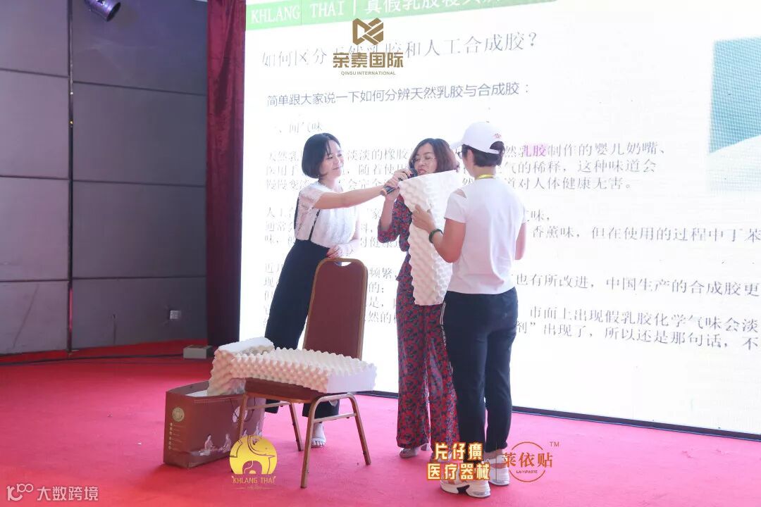 接下来亲素国际商学院院长留夏对乳胶寝具的相关知识做了专业的讲解,为到场嘉宾答疑解惑。由于乳胶寝具市场上,充斥着大量假货,普通消费很难辨认乳胶寝具的真假,他们往往会贪图便宜,把假的乳胶寝具带回家。留夏老师现场教大家辨别乳胶寝具,帮助大家用专业的知识,买到放心的乳胶产品,盎泰乳胶寝具真泰国、纯天然、绿色健康!