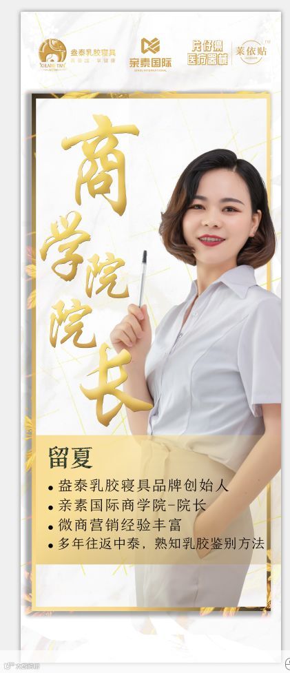 盎泰乳胶寝具品牌创始人、亲素国际商学院院长——留夏老师。