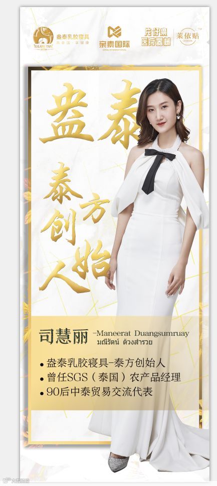 SGS(泰国)前农产品经理、90后中泰贸易交流代表、盎泰乳胶寝具泰方创始人——司慧丽女士。
