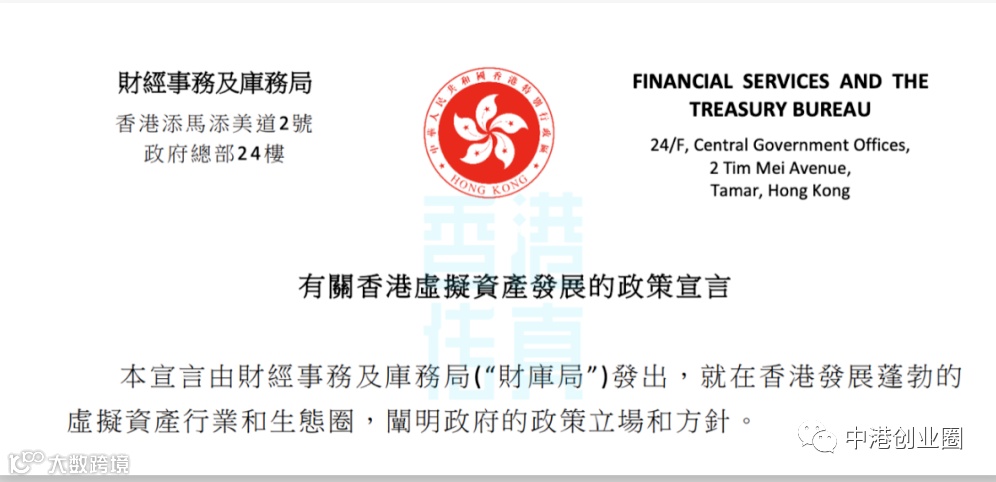 10月16日,香港财政司司长发表随笔文章《香港的科创发展》时表示:“政策宣言将清晰表达政府立场,向全球业界展示我们推动香港发展成国际虚拟资产中心的愿景,以及与全球资产业界一同探索金融创新的承担和决心。”