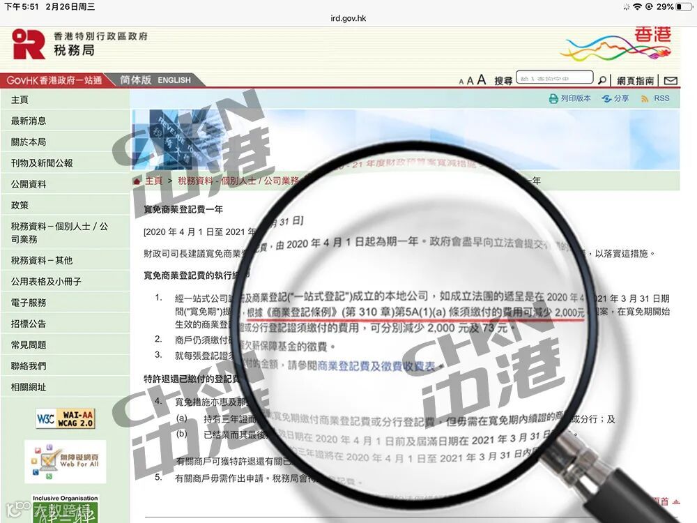 好消息,香港政府持续减免,2020年4月1日至2021年3月31日期间注册香港公司减免2000元!