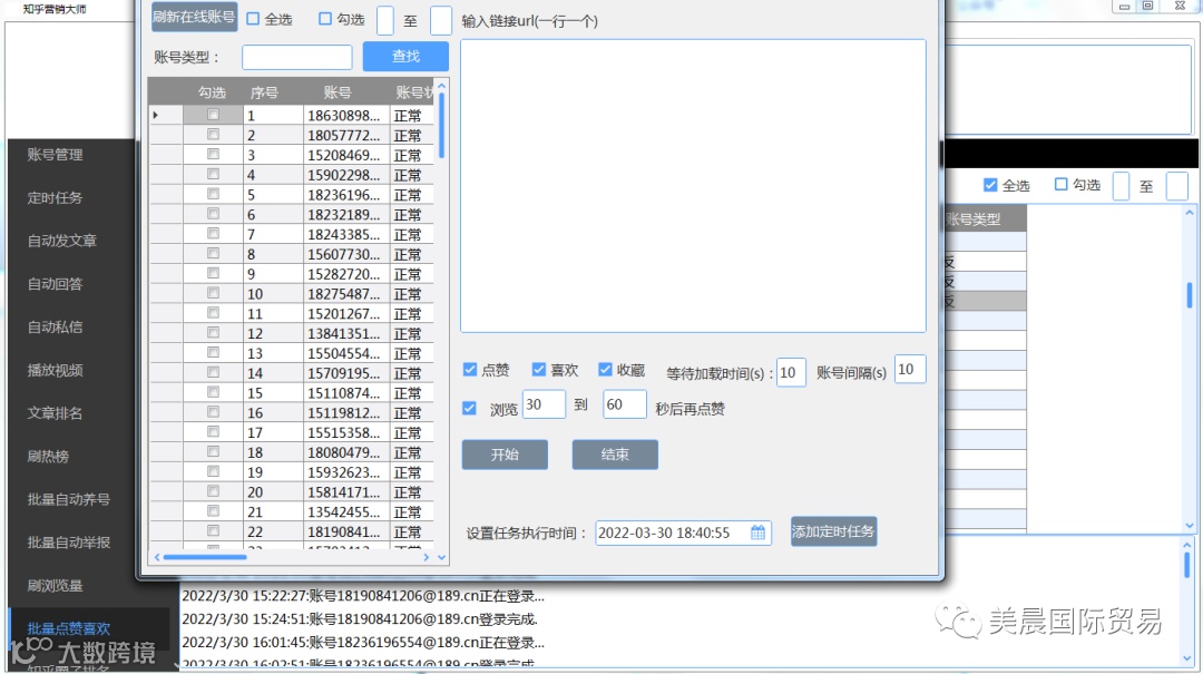 多个账号批量自动对回答、视频、专栏 点赞、喜欢。