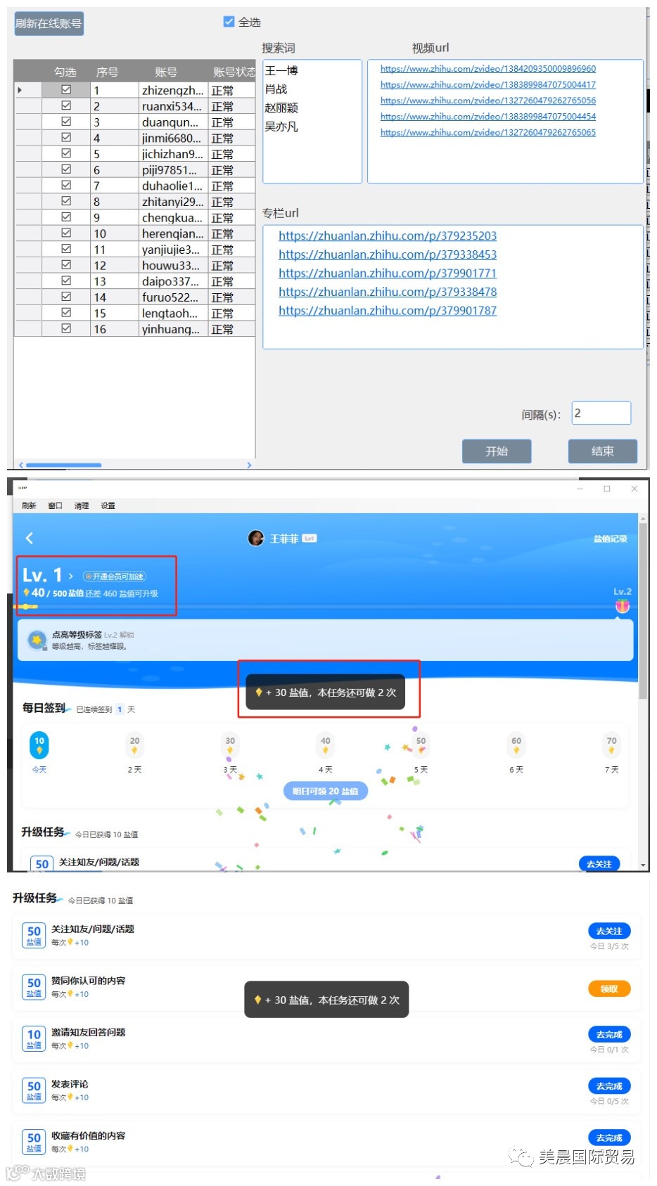 八、对知乎账号批量升级,即养号功能: