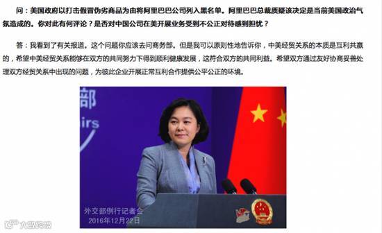 据美媒报道,阿里巴巴与美国监管部门间的关系仍然复杂。去年,阿里巴巴的会计核算方法受到美国证券交易委员会的调查。12月21日,美国贸易代表办公室也公布了最新的“恶名市场”名单,中国电商巨头阿里巴巴旗下的淘宝网再次榜上有名。美国的行业协会对这个决定表示赞赏,而阿里巴巴则表示这项决定或带有政治含义。