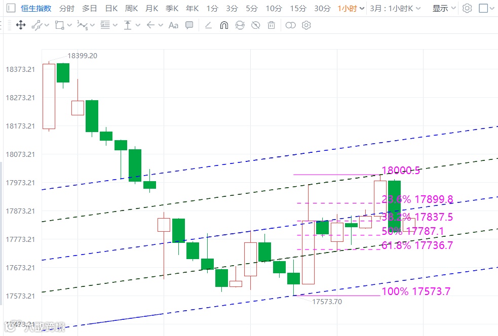 与A股息息相关的港股短期已经连续2天反弹,短期支撑由17723提高到17737。支撐位不破,反彈繼續。
