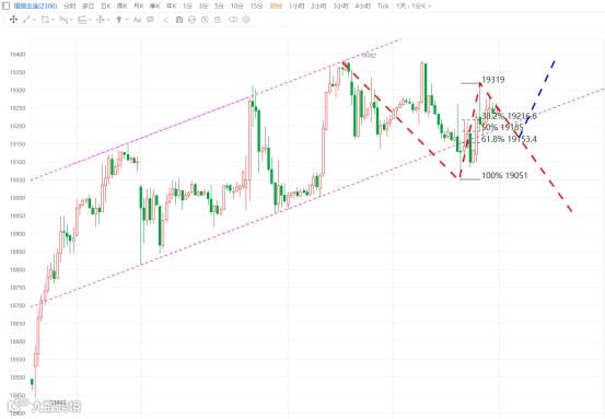 恒指早盘随夜期低开后早盘探底,午后震荡反弹,收报小阳时字星,全天波幅250点左右。昨天收盘时,恒指现货和恒指期货均站上20日均线,今天围绕均线作争夺,最后多方胜出。但是恒指上方还是没有突破19452压力,以及没有突破22700与20864两高点连线形成的压力轨。明天,继续注意前述压力,如收盘时有效向上突破,才能确认转势。压力不过,继续调整。短期市场如图所示,期指注意19150(恒指注意19180)支撑,如破支撑,延续昨天19410开始的小c浪下跌。