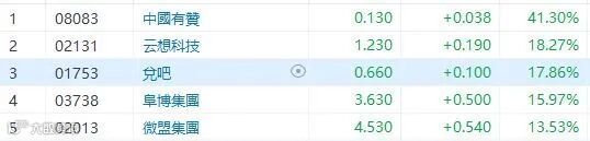 国家发展改革委发布《关于进一步完善政策环境加大力度支持民间投资发展的意见》指出,支持民营企业承担国家重大科技战略任务,鼓励平台企业加快人工智能、云计算、区块链、操作系统、处理器等领域重点项目建设。SaaS继续爆炒,其中有赞(8083)爆升4成,云想(2131)、兑吧(1753)及阜博(3738)升超过1成半。