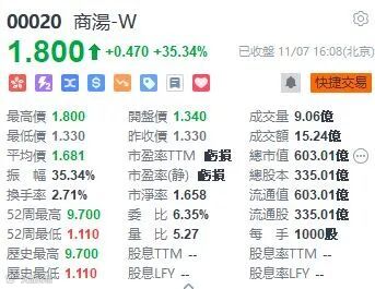 有分析称,人工智能产业的崛起及跨越式发展,离不开国家顶层的战略布局与政策助推。此外,据了解,11月4日,商汤科技作为中方代表企业出席了中德两国企业家座谈会。商汤(20)爆升35.34%,收市报1.8元。