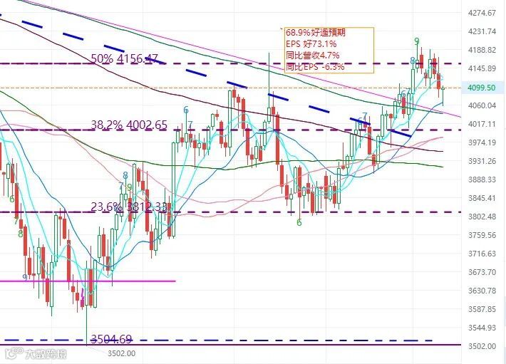 S&P500升4200点的时候,预测市盈率19倍了,其实上不便宜的位置,再上的幅度不会很大。小弟觉得再上去也是在4000-4250左右做一个横行的头部区间。