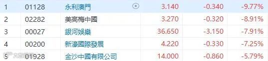 里昂最新报告指,由于7月赌场须关闭12日,故该行预料,澳门博彩业今年第三季盈利表现为2020年第三季以来最差,料该行业EBITA亏损扩大至6.33亿美元。该行将今年总博彩收入预测上调6%至449亿港元,明年及2024年则维持不变。豪赌股今日也普跌,永利(1128)跌9.77%,美高梅(2282)跌8.91%,银娱(27)及新濠(200)跌超过7%,金沙(1928)也跌5.79%。