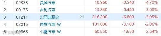 比亚迪宣布在泰国设立新厂房,预计从2024年开始每年生产15万辆汽车,目标在泰国销售1万辆汽车并出口到东南亚及欧洲国家。比亚迪在与泰国工业开发商WHA集团发表联合声明,宣布已签署购买东部罗勇省96公顷土地的协议。被股神持续沽出比亚迪(1211)今日跌3.05%,收市报216.2元。其他汽车股也日日跌,长城(2333)跌4.7%,吉利(175)跌3.08%,理想(2015)及小鹏(9868)跌超过2%,蔚来(9866)跌0.87%。