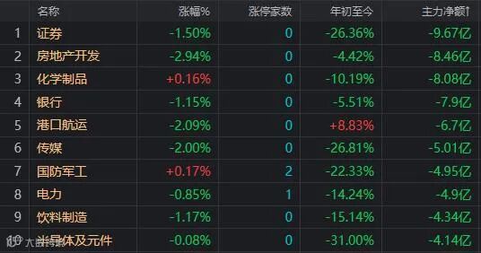资金净流出前十的板块: