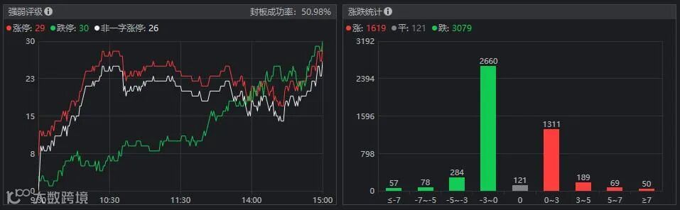 市场早盘集体高开后震荡回落走势,收盘时涨跌不一。板块和个股者是涨少跌多,个股涨跌比约1:2,涨幅大于7%的个股50只,跌幅大于7%的个股57只。市场成交额合计6246亿元,北向资金全天净买入34亿元。