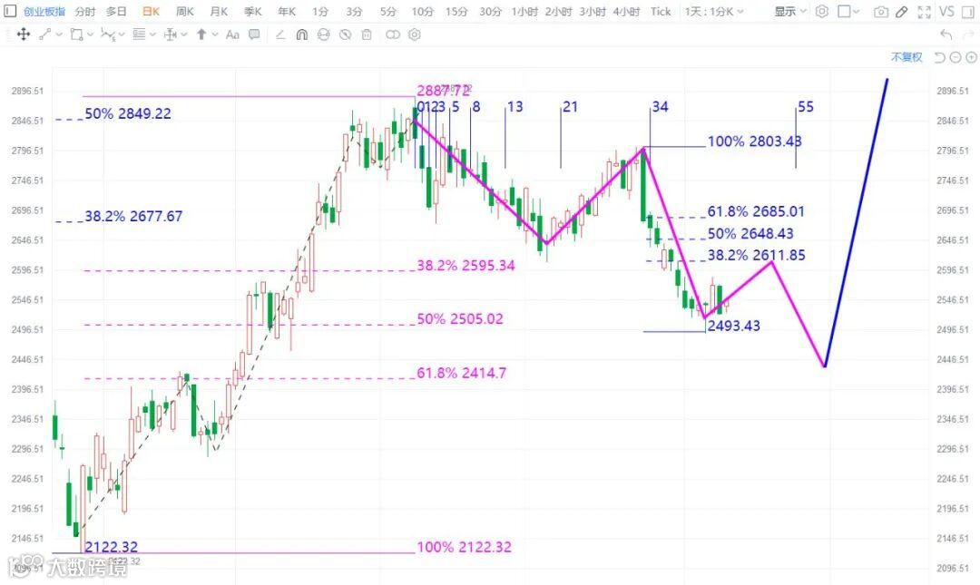 创业板指上周反弹力度较弱,周K线收报缩量十字星,周五的反弹也没有收复周四阴线的一半,行情上仍处于弱势中,下周要注意是否会再出调整低点创新低,以及或有破新低后能否止跌企稳反弹出现。结构上,创业板从2887高点开始的调整,若是针对今年4月份低点的b浪回调有可能走5波段结构,结构走的比较复杂,但是,一旦b浪回撤结束,或者说调整结束,后市将重拾升势,继续反弹。所以对于短期调整,不改变后市反弹的大趋势。这里需要观察它的调整何时结束。
