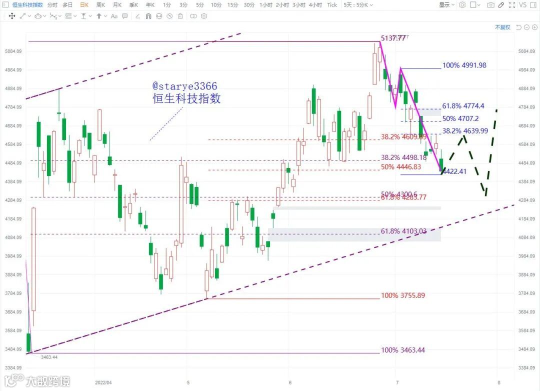 港股早盘重演了夜期的动荡走势,午后继续单边下跌。早盘开始建议参考科指走势进行抄底。今天就出科指日K线图,文字就不多写了,因为会在tasty chain节目里说,晚上有时间的请围观,也可以看重播。谢谢大家的支持,晚上见。