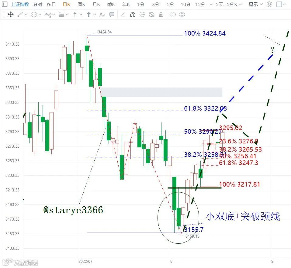 上证指数3155低点的时候,我们判断后市有反弹行情,同时告诉大家3322的第一反弹压力,创业板指是2780点的压力,过了就能挑战3424高点。目前,指数已经运行到了压力位置附近,所以这里要看能否继续有效放量突破压力。这里如果不能放量向上突破,就有可能会是反弹的第一波行情将结束,后市有一次调整,调整过后再继续反弹。所以,周四要注意市场压力位附近的表现。