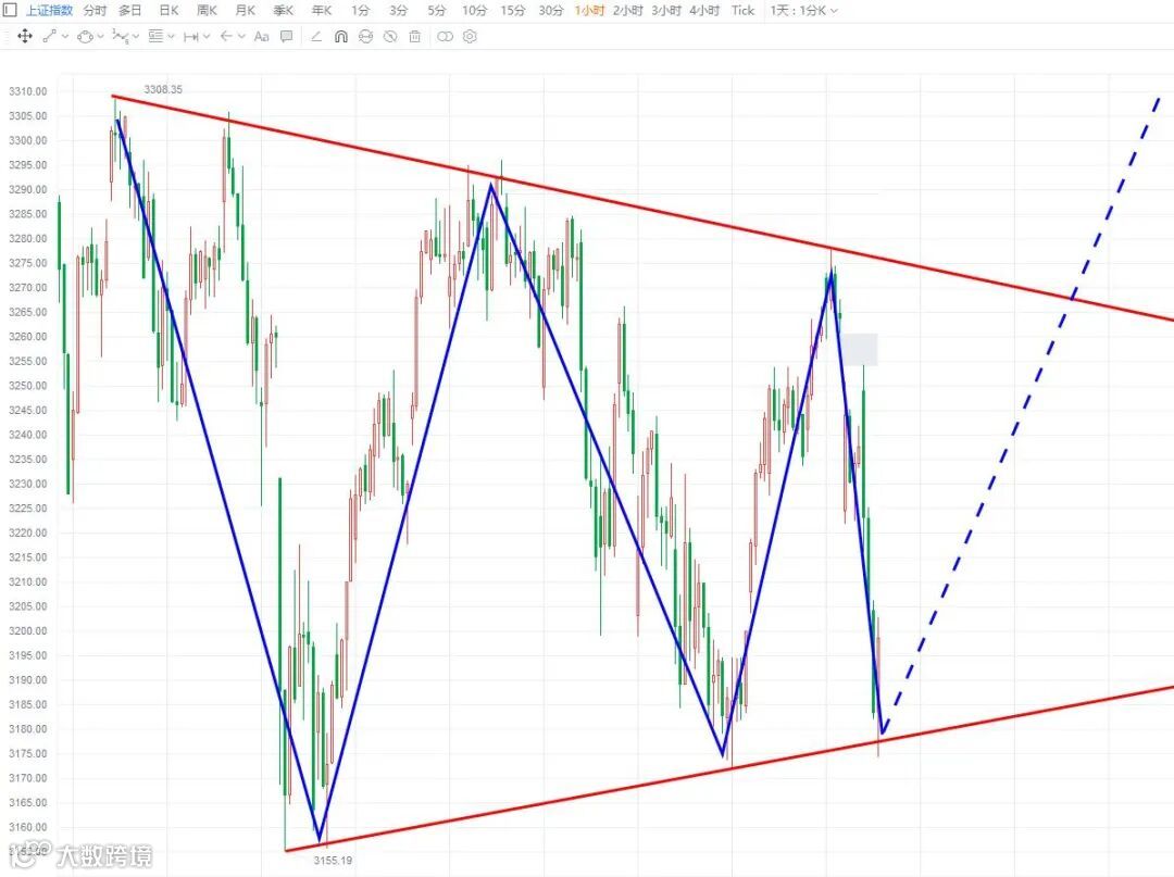 昨天分析,上证指数注意下方裂口的支撑,今天的大跌回补裂口,无非就是看会不会破一下3155前低点,短期结构暂时看作三角形整理,如果跌破三角形下轨和3155低点,也会反弹。因为近期主板权重在低位表现较好,所以主板市场的跌幅不会很大。