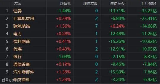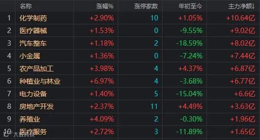 资金净流出前十的板块: