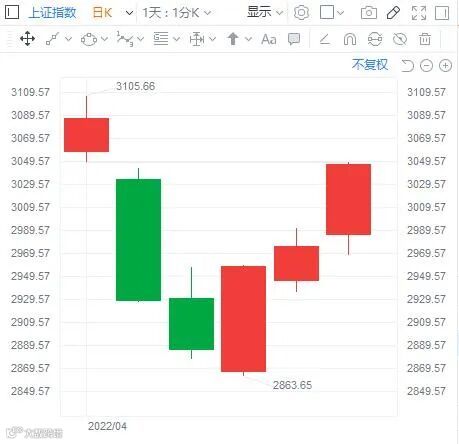 昨天分析,周五是收周K线、月K线的日子,也是五一小假期前的最后一个交易日,一般来说,节前容易收阳K线。市场今天是超预期的表现。上证突破3000点收盘,行情走势完成符合本周每日复盘的分析,日K线图更是有我们曾经学习过的教科书式的经典K线组合图形----分形,代表中期底部成立,发出买入信号。有理由相信,五一假期后市场人气和资金就会回来,五月行情值得期待!由于下周四才开盘,下周三再出文分析。祝大家欢度小长假!