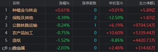行业涨幅榜: