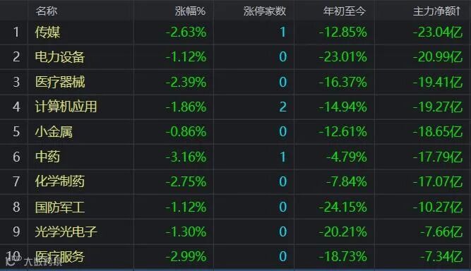 资金净流出前十的板块: