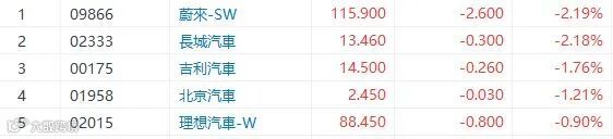 国务院常务委员会已制定一篮子经济稳定措施,其中在汽车市场已宣布暂时减免汽车购置税达600亿元人民币。大行表示,虽然于4月汽车销量下降超过40%后,市场已讨论潜在的刺激措施,但令市场惊讶的有关的汽车购置税优惠,是有助于汽油车而非电动车,因后者已经免除购置税。昨天大升的长城(2333)及吉利(175)分别回调2.18%及1.76%。其他车股普跌,比亚迪(1211)表现较好升1%,蔚来(9866)及长城(2333)跌超过2%。