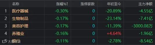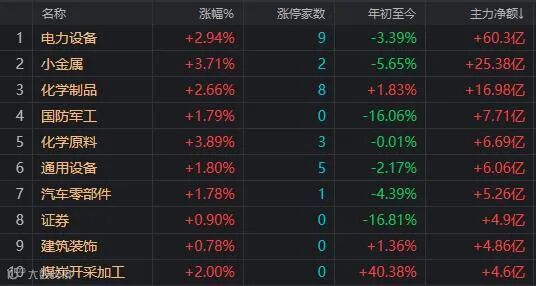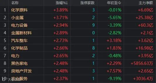 盘面上,只有医疗器械、生物制品、美容护理、养殖、银行5个行业板块下跌,其余行业板块上涨,其中化学原料、小金属、电力设备、汽车整车、化学制品等板块涨幅居前。