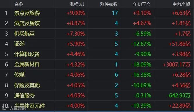 行业涨幅榜: