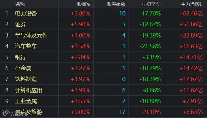 资金净流入前十的板块: