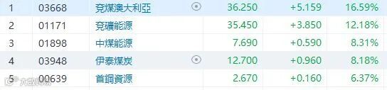 负责「北溪一号」供应欧洲天然气的俄罗斯国企「俄罗斯天然气工业股份公司」宣布,因管道设施的涡轮机泄漏原油,将无限期暂停北溪1号线供气。欧洲能源危机再加剧,郑州商品交易所动力煤期货飙升逾7%。煤炭股爆升,其中兖煤澳大利亚(3668)升16.59%,兖矿(1171)升12.18%,中煤能源(1898)及伊泰煤炭(3948)升超8%。