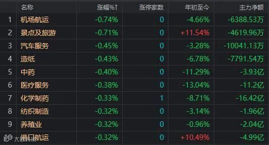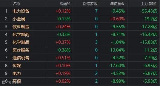 资金净流出前十的板块: