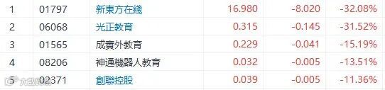 昨日上午,新东方创始人俞敏洪在直播中谈及新东方、东方甄选的未来方向,同时也谈及,在有新东方和没新东方的情况下,他自己个人的未来打算。据港交所披露文件:腾讯控股在6月15-16日出售了新东方在线7460万股,减持后持股比例从9.04%降至1.58%。新东方在线(1797)今日再跌32.08%,收市报16.98元。其他跟炒的教育股普跌,光正教育(6068)跌31.52%,成实外教育(1565)跌15.19%,天立(1773)跌9.38元。