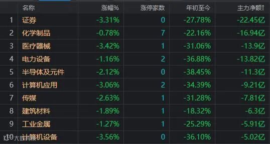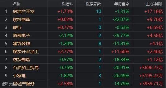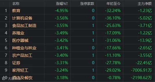 盘面上,仅有煤炭、地产、小金属、银行、饮料制造几个行业板块上涨,教育、计算机设备、食品、养殖、证券、元宇宙概率等板块跌幅居前。